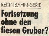 Die Wahrheit über die Rivalen der Rennbahn: Als Ralph Suerland Thomas Fritsch doubelte Zur Kritik, daß vom Direktorium der Erfolg der TV-Serie ,,Rivalen der Rennbahn" nicht weiter ausgebaut und verfolgt worde, hat der Pressesprecher Peter Brauer Stellung genommen und mit interessanten Einzelheiten klargestellt, wie sehr sich das Direktorium um diese Serie und auch um ihre Fortsetzung bemüht hat (9.03.2000): ,,Die (alleine in Deutschland dreimal wiederholte) Serie "Rivalen der Rennbahn" hätte es nie gegeben, wenn wir nicht von der ersten Stunde an dabei gewesen wären (noch lange vor Erstellung des ersten Drehbuches). Wir haben die Drehorte gesucht und vermittelt, die Drehbücher mitbearbeitet, alle möglichen (extrem weit gehenden) Genehmigungen erteilt bzw. besorgt, Requisiten zur Verfügung gestellt (einschließlich meines halben privaten Hausstandes und meiner Pferde), ca. 30 Stuntpferde genau wie menschliche Doubles beschafft und und und.... Selbst Uwe Stoltefuß, der vom Aussehen her so geeignet war, wurde von uns überredet, als Double mitzumachen, genau wie der jetzige Trainer- und Jockeypräsident Ralf Suerland, der in den Rennszenen Thomas Fritsch doubelte. Nach Feierabend und nach Stallschluß haben einige von uns Thomas Fritsch, der 20 Jahre nicht mehr auf einem Pferd gesessen hatte, Reitunterricht auf den eigenen Vollblütern gegeben und alle möglichen Tipps. Wir haben die Rennordnung so weit gedehnt, wie es nur ging, um alles möglich zu machen, was da nötig war. Und glauben Sie mir, es gab massive Widerstände, die überwunden werden mußten, nicht nur in Köln. Ich erinnere mich da zum Beispiel an ein Gestüt, das ein 8 Stunden-Drehentgelt von 4.500 DM (im Jahre 1986) aufrief, bloß um die Filmaufnahmen ja nicht am Ende an den Hals zu bekommen. Und den Rennvereinsgeschäftsführer, der von der Filmfirma in fünfstelliger Form Vorkasse für Drehentgelte verlangte und jeden Ballen Stroh extra berechnete. Und Aktive (als Doubles vorgesehen), Besitzer, Besitzertrainer, die aus heiterem Himmel streikten und im "Goldrausch" utopische Forderungen stellten, weil die Gelegenheit zum Erpressen während der laufenden Produktion (an manchen Tagen 80 Personen beteiligt, viele davon nicht gerade aus der Leichtlohngruppe) so besonders günstig und verlockend war. All diese Probleme haben wir in Köln mit gelöst. Teils in stundenlangen Telefonaten vom Urlaubsort aus. Mit dem Geschäftsführer der Produktionsfirma, den wir so weit in den Rennsport eingeführt haben, daß er am Ende 16 oder 18 Rennpferde besaß und Mitglied in diversen Rennvereinen wurde, sind einige von uns noch heute befreundet. Etliche einzelne Filme sowie zahlreiche Episoden in anderen Serien, die im Rennsport angesiedelt wurden, gehören mit zu den Ergebnissen. Der vierbeinige Hauptdarsteller Mazzoni wurde auf einmal zum Star. Rennvereinen war es auf einmal namhafte (!) Summen wert, ihn in Begleitung einiger der Schauspieler auf die Bahn zu bekommen, weil es ein solcher Publikumserfolg war. Margot Hielscher, Thomas Fritsch, Radost Bokel und Maja Maranow liefen dutzendemal uns zuliebe zu PR-Terminen bei Rennen, Championatsehrungen, Galopper-des Jahres-Präsentationen, bei der "Nacht des Pferdes" oder beim Sportpressefest in der Dortmunder Westfalenhalle auf. Eine spezielle Yellow Press PR-Agentur entwickelte eine hocherfolgreiche begleitende Printkampagne. Zahllose Versuche des Produzenten, die Staffel, die teilweise Einschaltquoten hatte wie heute "Wetten daß", fortzusetzen, wurden von uns unterstützt. Internationale Coproduktionen wurden konzipiert, leider ohne Erfolg. Selbst Herrn von Gaertner antichambrierte bei Professor Stolte (ZDF-Intendant) wie bei Gyula Trebitsch und und und... Leider ohne Erfolg. " |